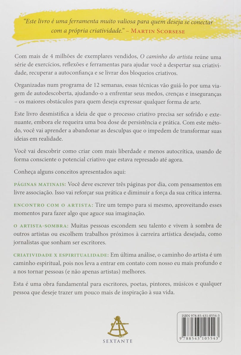 Organizadas num programa de 12 semanas, essas técnicas vão guiá-lo por uma viagem de autodescoberta, ajudando-o a enfrentar seus medos, crenças e inseguranças – os maiores obstáculos para quem deseja expressar qualquer forma de arte.