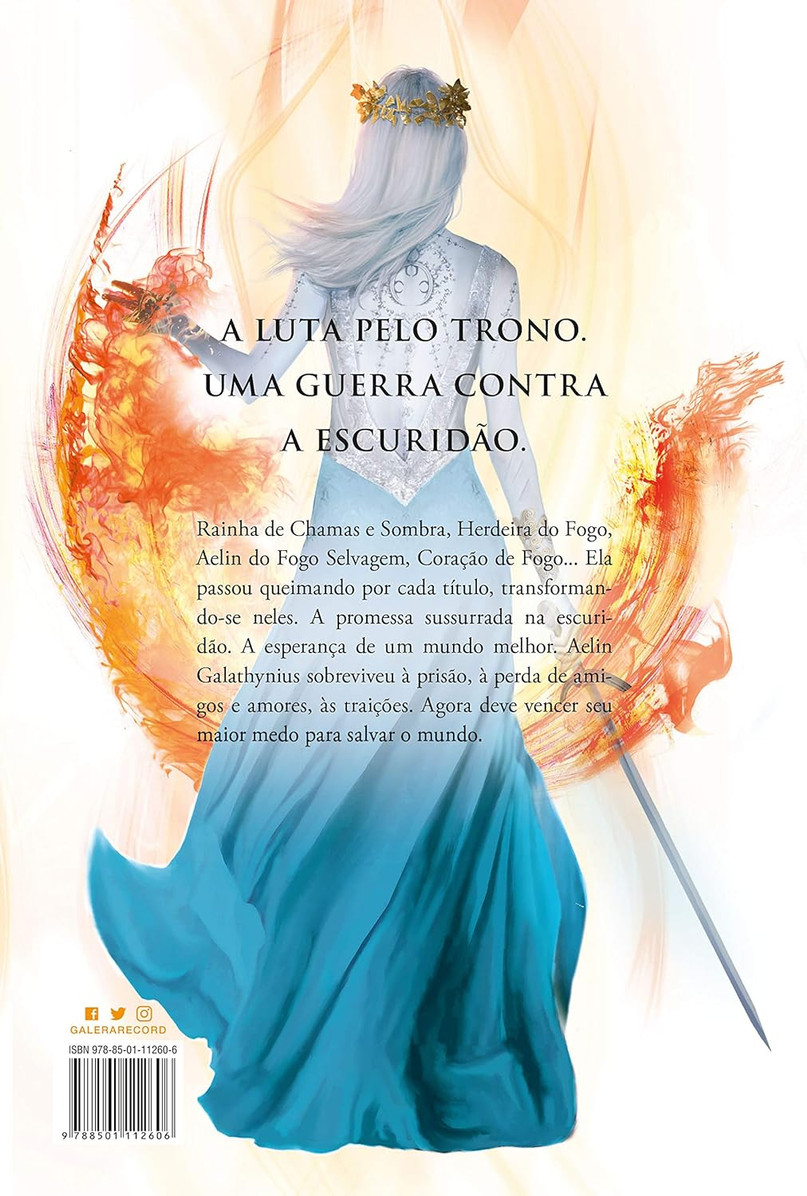 Com o coração preso ao príncipe feérico a seu lado, e a vida e o poder jurados ao povo que está determinada a salvar, a antiga assassina Celaena mergulhará no poço da própria magia, afim de proteger os seus. Para honrar a coroa de fogo sobre sua cabeça, Aelin colocará a própria segurança em risco.